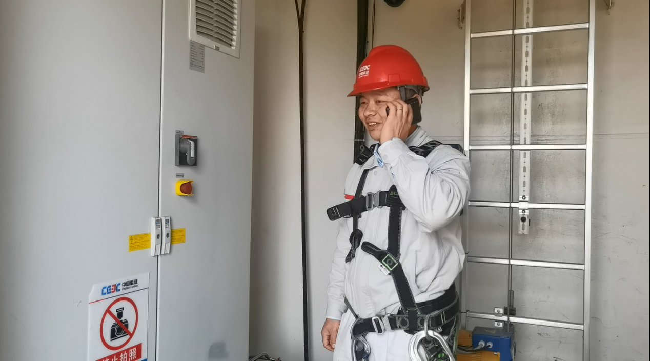 “老婆,剛下塔,都在南雄,相隔50公里,只能視頻問好,謝謝你的理解和支持。” 結束了完風機輪轂檢修,從80米塔筒下來的吳良文略顯疲憊,第一時間和家人電話保平安,說抱歉。