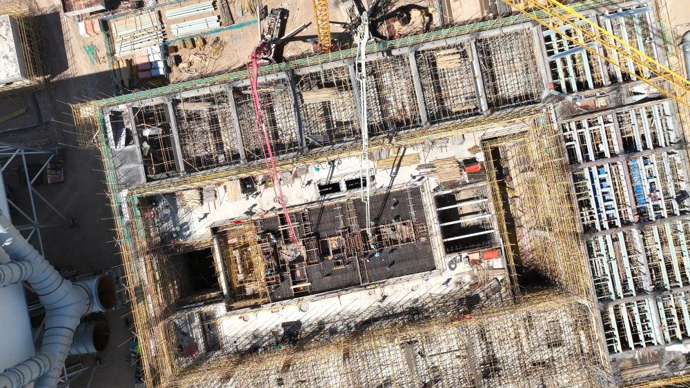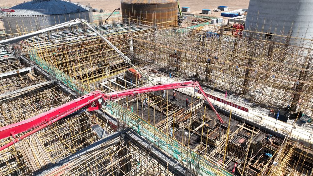 記者采訪獲悉,該項目由中國能源建設(shè)集團(tuán)投資有限公司投資建設(shè),于2024年5月開工,計劃2027年6月完工。本次澆筑的汽輪機(jī)基礎(chǔ)是光熱電站核心結(jié)構(gòu),投運(yùn)后需承載數(shù)千噸設(shè)備重量及高頻振動荷載。本次澆筑混凝土方量600立方米,屬于大體積混凝土澆筑,基礎(chǔ)需嵌入大量預(yù)埋件、螺栓孔,施工精度直接影響設(shè)備安裝定位,施工已于7月16日完成。項目地處哈密市巴里坤哈薩克自治縣的一處戈壁上,建設(shè)環(huán)境惡劣,氣候變化大,交通不便,生產(chǎn)生活物資供給困難,年施工窗口期僅7個月。經(jīng)過克服風(fēng)沙侵襲、嚴(yán)寒酷暑等多重考驗,歷時數(shù)月的精細(xì)籌備,目前施工正按計劃穩(wěn)步推進(jìn),整體工程有序鋪開。