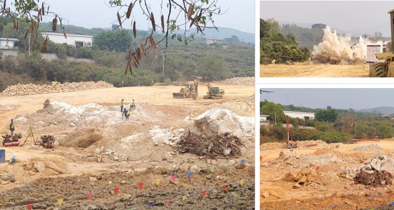 設計團隊經嚴謹評估,大膽采用爆破結合機械開挖的創新工藝?!靶∨凇鞭Z鳴,塵煙翻滾,頑固的軟土和阻礙施工的石塊被快速破碎清除,隨后回填毛石混凝土,分層振搗。這一雷霆手段極大節省了寶貴時間,將看似不可能完成的地基處理任務變為可能,為后續建設搶得了先機。
