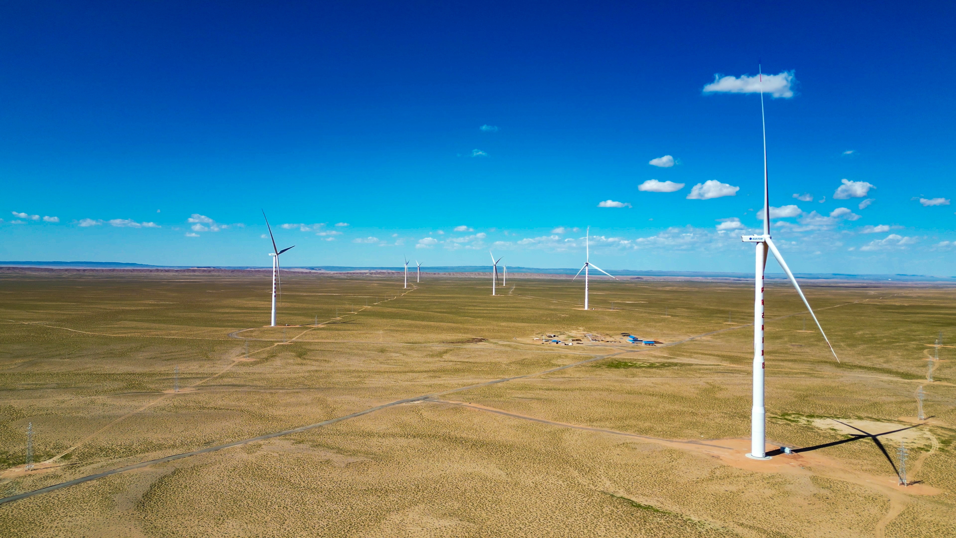 中國能建葛洲壩電力公司承建的內蒙古能源阿拉善右旗100萬千瓦風儲基地保障性項目三標段全容量并網投運