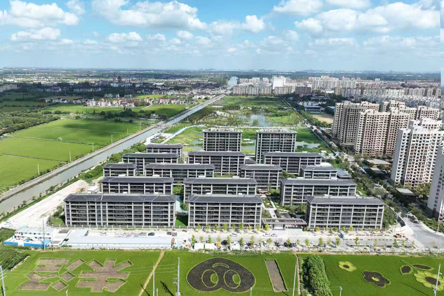行走在上海金山朱涇鎮房建項目的秋冬月,依舊綠意升騰,生機涌動。